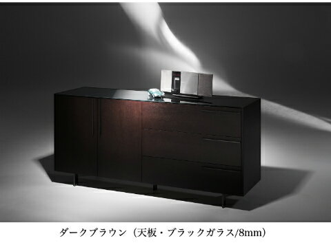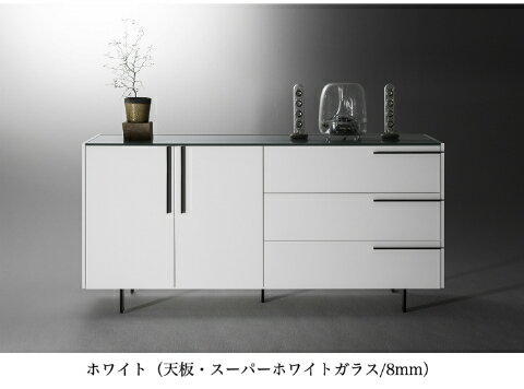 ) 色 ホワイト(天板・スーパーホワイトガラス/8mm)ダークブラウン(天板・ブラックガラス/8mm)商品説明 サイドボード1600は“木&ガラス&金属”の異素材の対比ディティールにこだわりミニマルdesignを追求しました。